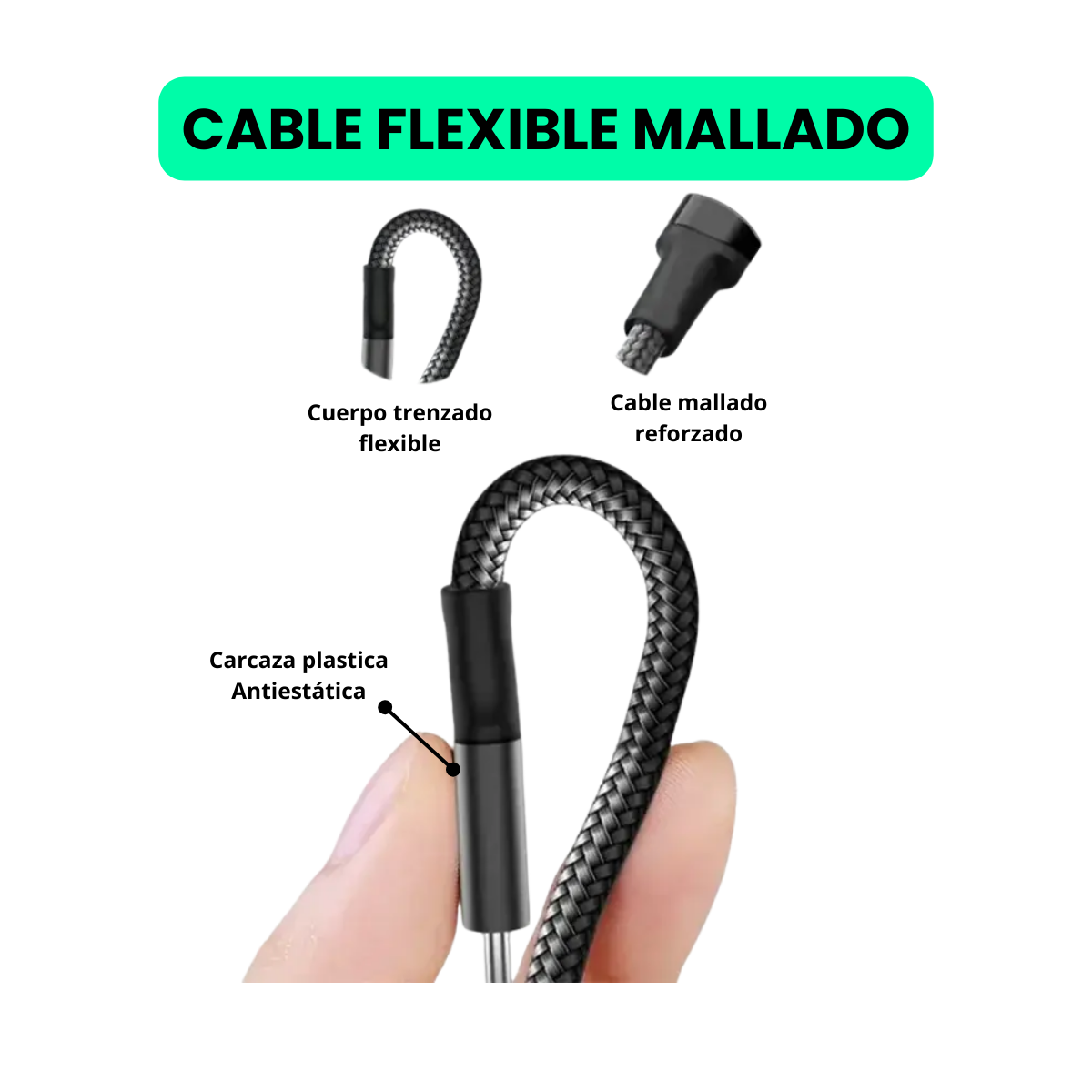 -Material premium: Nylon trenzado + aleación de aluminio + conectores nickelados.