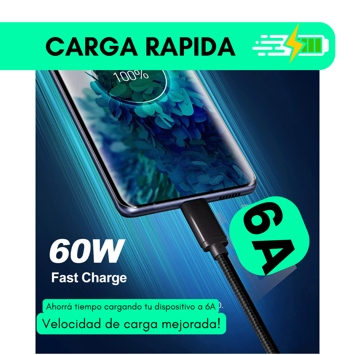 -Carga ultrarrápida: Carga a 6A en dispositivos compatibles.